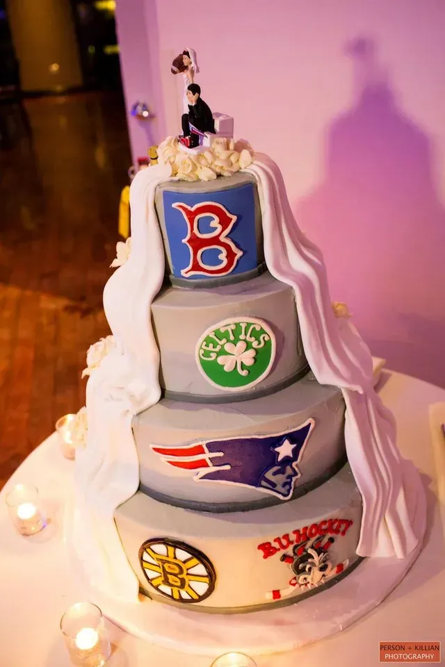Sports fanatic? Check out these examples of Boston's professional sports team cakes. For a more understated Boston influence, take inspiration from the cakes featuring the Harbor Bridge and the city’s famous skyline.